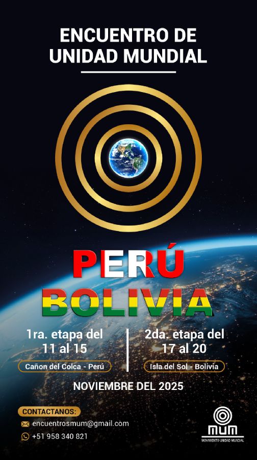 Evento que se desarrollará desde el martes 11 hasta el jueves 20 de noviembre (2025), en la ciudad de Arequipa (Cañón del Colca) – Perú y en la Isla del Sol (lago Titicaca) – Bolivia, dos centros de poder de gran relevancia destinados para este transcendental